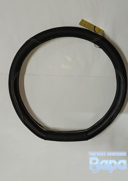 Оплeтка "М" (38 см) Эко-кожа снизу прямая на Китайские авто (черный/бежевая строчка)