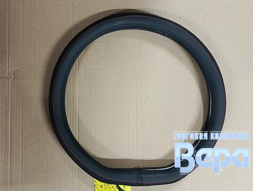 Оплeтка "М" (38 см) Эко-кожа снизу прямая на Китайские авто (черный/красная строчка)