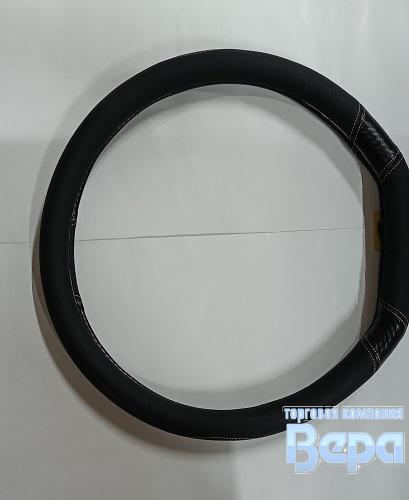 Оплeтка "М" (38 см) Эко-кожа снизу прямая на Китайские авто (черный/белая строчка)