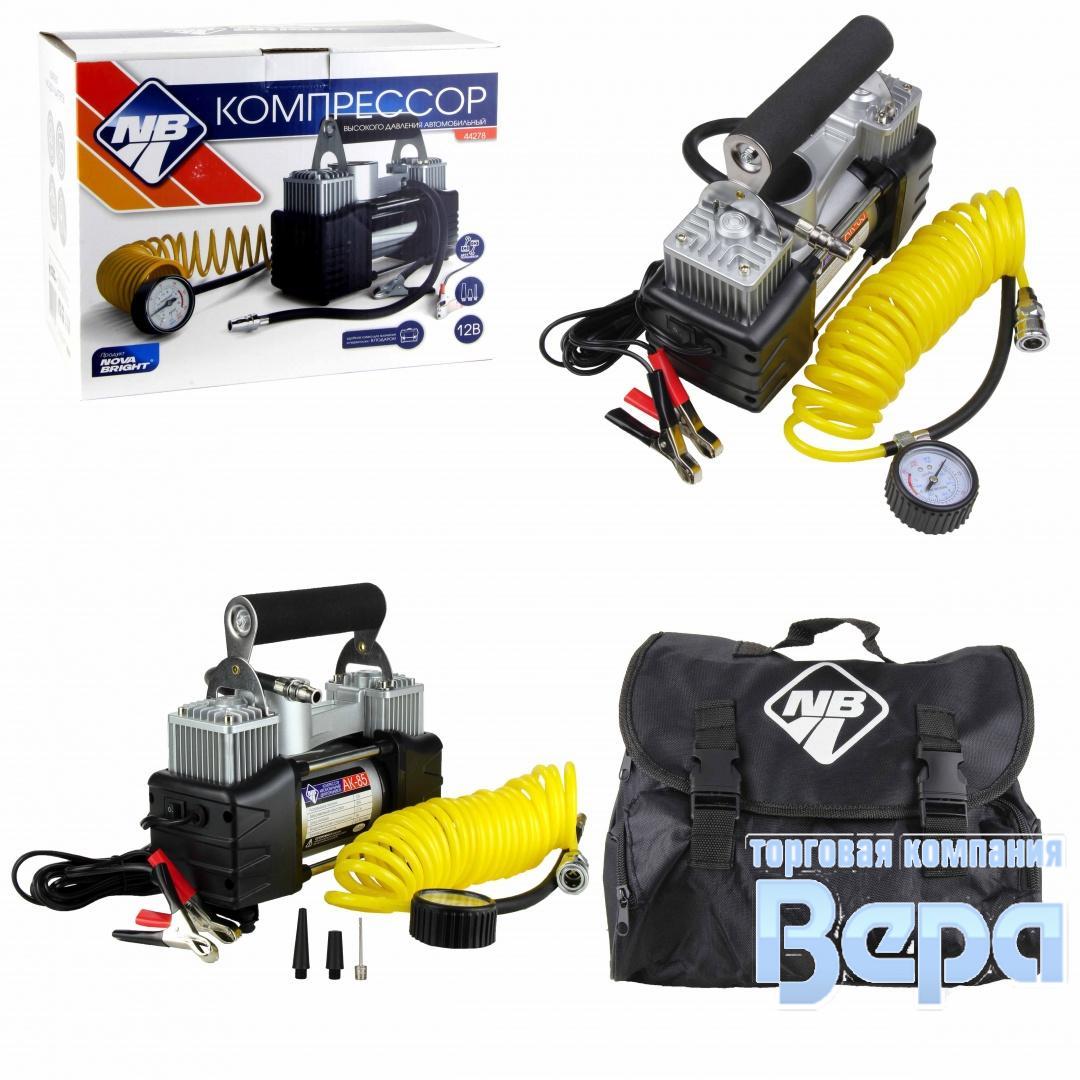 Компрессор 2-х цилиндр NOVA BRIGHT 85L (85л/мин; 150PCSI) 12В металл. корпус в сумке