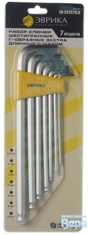Набор ключей шестигранников Г-образ. 7пр. (2,5-10мм) экстра длинных с шаром ЭВРИКА