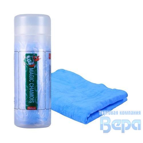 Салфетка-замша в пенале с пропиткой (малая 43x32см) синяя Li-Sa
