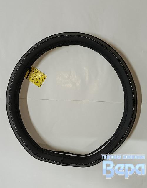 Оплeтка "М" (38 см) Эко-кожа снизу прямая на Китайские авто (черный/серая вставка)