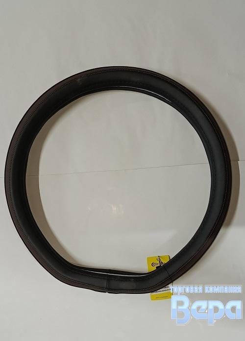 Оплeтка "М" (38 см) Эко-кожа снизу прямая на Китайские авто (черный/коричневая вставка)