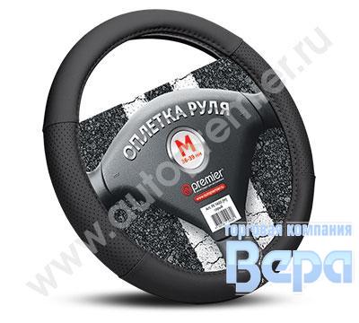 Оплeтка "М" (38 см) Эко-кожа (черный/белая нить) перфорированная вставка