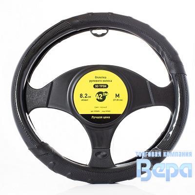 Оплeтка "М" (38 см) Эко-кожа (черный) перфорированные вставки, красная прострочка