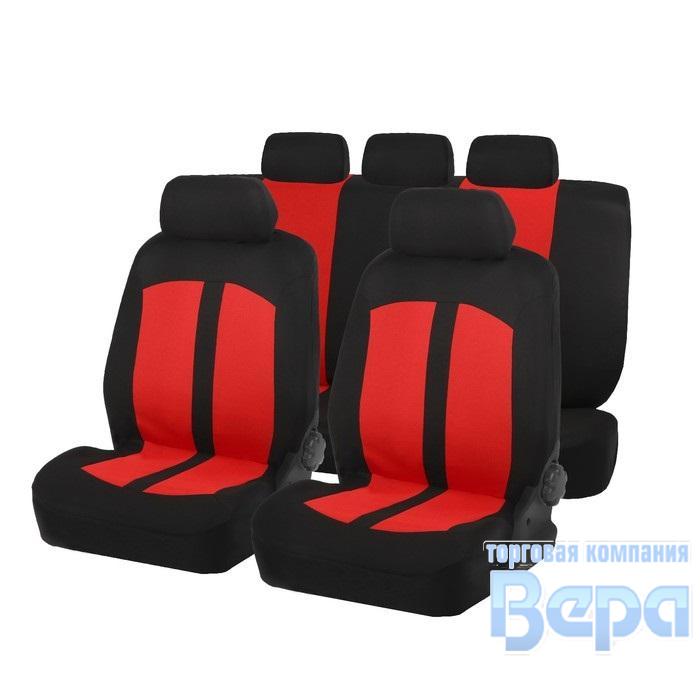 Чехол на сиденье Комплект 11пр. LEADER (черный/красный) полиэстер/сетка, 3 молнии, 2 мм поролон