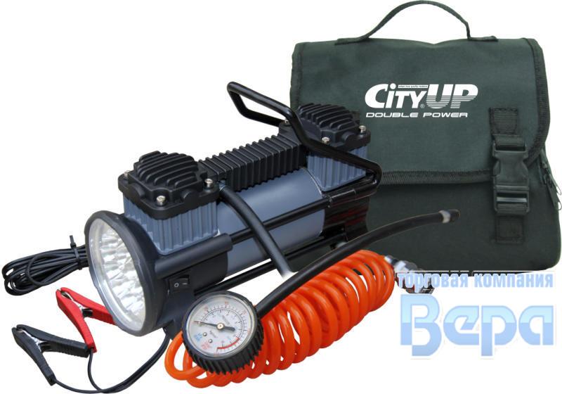 Компрессор 2-х цилиндр CITY UP 619 Double Piston Tyre Inflator (60л/мин;10А) с фонарем + клеммы