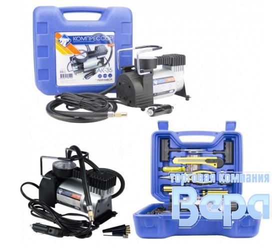 Компрессор "Nova Bright" АК-35, 35 л/мин.,140 PSI, 12В, металлический корпус, пластик. кейс с инструментом