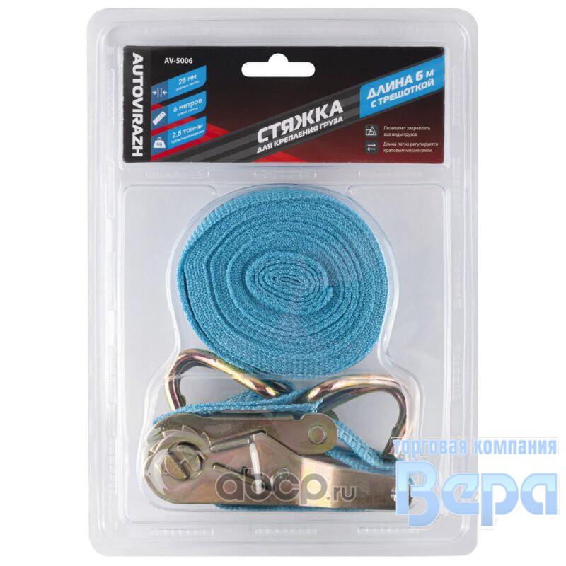 Стяжка для крепления груза с трещеткой 2,5т (6м х 38 мм) с крюками,замком (в блистере)