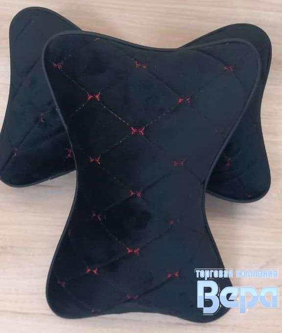 Подушка на подголовник 'Кость' ALCANTRA (к/т 2шт) чёрный/красная нить. Стяжка-ромб