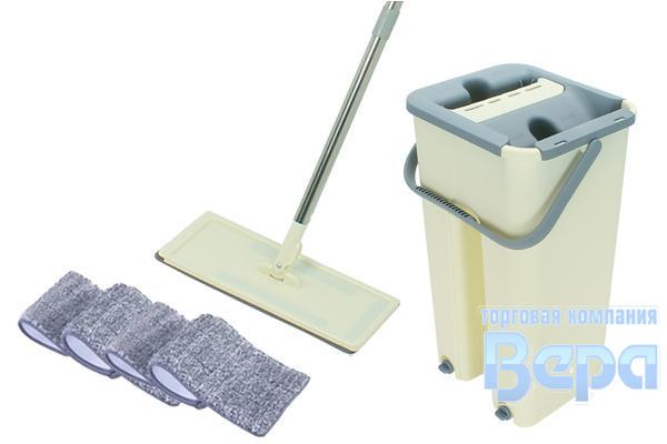 Швабра для пола с отжимом + двухкамерное ведро(4л) + насадки 4шт АВТОТОРГ