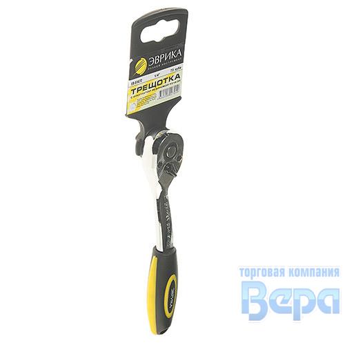 Ключ трещотка 1/4" 72 зубца L=150мм с изогнутой резиновой ручкой ЭВРИКА