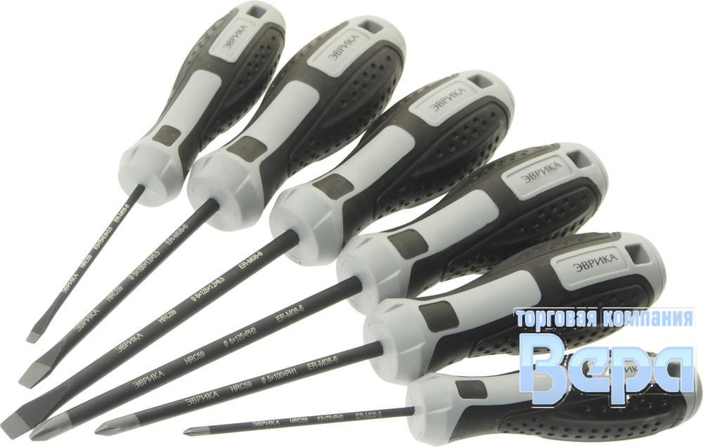 Набор отверток 6пр. (SL3.5 3x75, SL5.5 5x100, SL6.5 6x125; PH0 3x75, PH1 5x100,PH2 6х125) ЭВРИКА