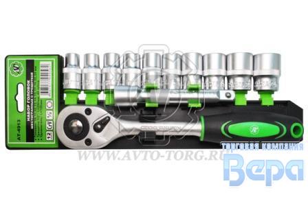 Набор головок с трещоткой 12пр. 1/2" 6-ти гранных + удлинитель (на держателе) АВТОТОРГ