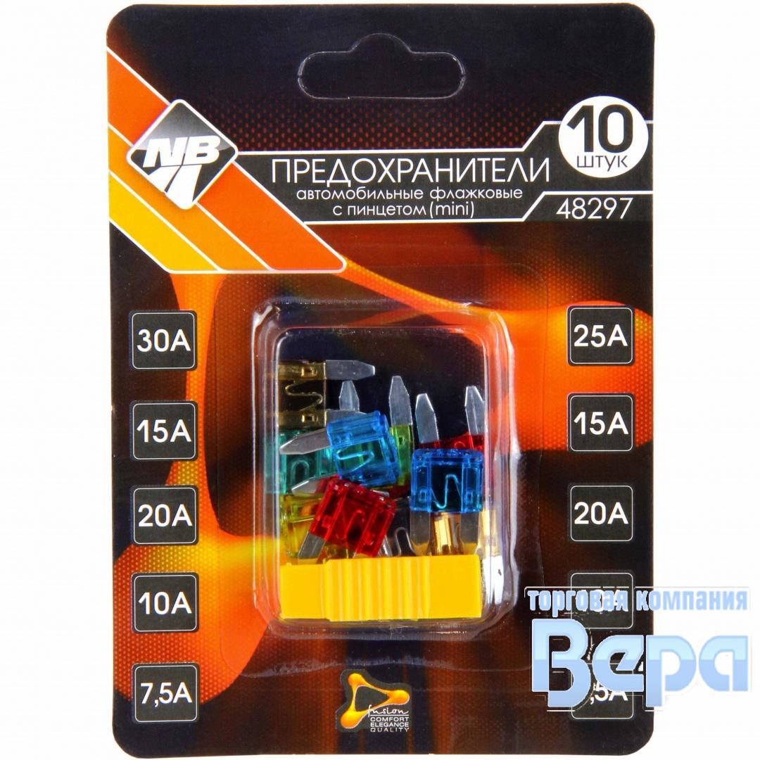 Предохранители флажковые МИНИ в блистере (10 шт) 7.5-30A с пинцетом Nova Bright-fusion