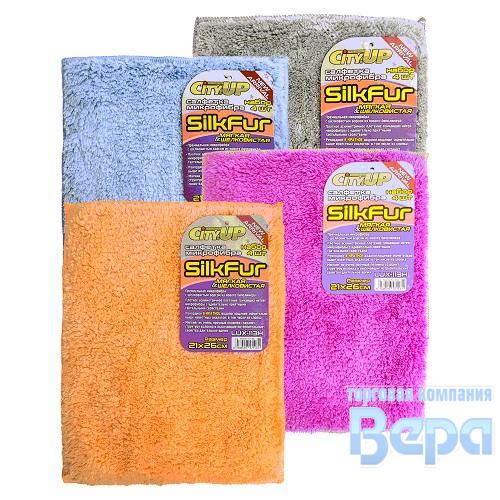 Салфетка-микрофибра Набор ( 4шт) 21 х 26 см SilkFur, 300г/м 8-кратное водопоглощение